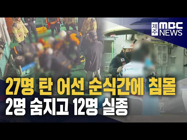 ◀ 앵 커 ▶ 제주 바다에서 고등어 잡이에 나섰던 어선이 침몰해 선원 2명이 숨지고, 12명이 실종됐습니다. 사고 발생 15시간이 넘었지만 실종자 수색이 이뤄지고 있는 현장에서는 아직 추가 생존자 발견 소식이 나오지 않고 있습니다. 홍수현 기자입니다. ◀ 리포트 ▶ 사고 어선에서 흘러나온 것으로 추정되는 기름띠가 넓...