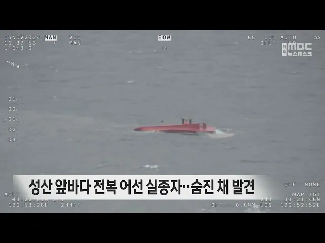 성산 앞바다 전복 어선 실종자‥숨진 채 발견