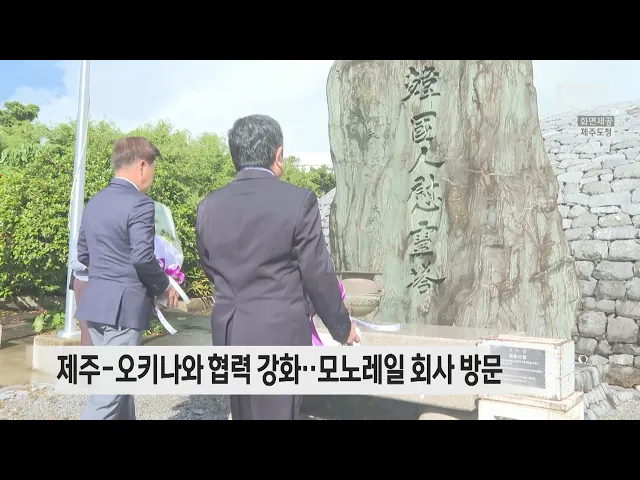 제주도가 일본 오키나와와 평화와 관광을 중심으로 협력을 강화하기로했습니다. 일본 오키나와현을 방문 중인 제주도 대표단은 오키나와 평화기념공원을 방문해희생자들을 추모하고, 한국인 위령탑을 찾아한국인 희생자 넋을 위로했습니다. 오영훈 지사는 두 지역을 잇는 항공기 직항 노선을 개설해교류 기반을 다지고 협...
