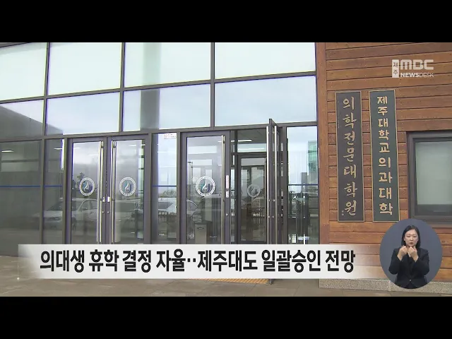 정부가 의대 증원에 반발해수업을 거부하고 있는 의대생들의 휴학 결정을대학 자율에 맡기도록 하면서제주대도 휴학을 일괄승인할 전망입니다. 제주대는 교육부로부터 의대생의 개인 사유 휴학을자율 승인하도록 하는 내용의 학사 운영 공문을 접수하고 휴학 신청에 대한이의 신청 확인 절차를 거쳐 휴학을 승인할방침입니...