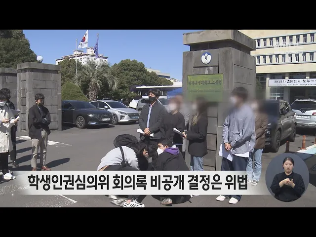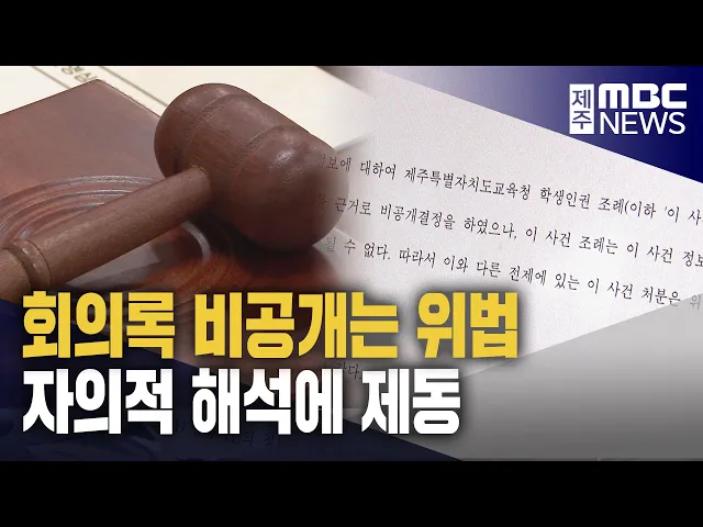 ◀ 앵 커 ▶ 논란을 빚었던 제주도교육청의 학생인권심의위원회 회의록 비공개 결정과 관련해 법원이 위법하다는 판결을 내렸는데요. 비공개 결정이 잦은 공공기관들의 각종 위원회 활동 내역 공개에 영향을 줄 것으로 보입니다. 홍수현 기자입니다. 학생들의 인권을 보장하기 위해 2021년 제정된 제주 학생인권조례에 따라 ...