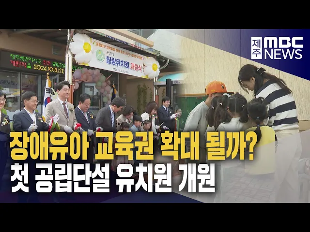 ◀ 앵 커 ▶ 제주에서는 처음으로 초등학교 병설이 아닌 공립 단설 유치원이 문을 열었습니다. 그동안 도내 공교육에서 사실상 배제됐던 3, 4세 장애유아도 공립 유치원에 다닐 수 있게 됐는데요, 완전한 장애유아 교육권 확대까지는 시간이 더 걸릴 것으로 보입니다. 홍수현 기자가 보도합니다. ◀ 리포트 ▶ ◀ SYNC ▶ 커트! ...