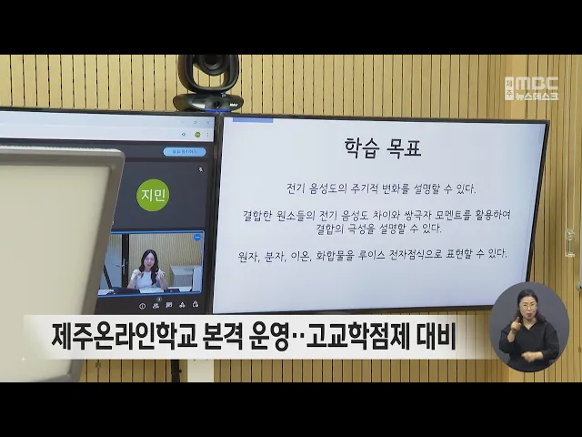 제주온라인학교가 본격적인 운영을 시작했습니다. 제주도교육청은 제주고 부지 안 호텔경영실습동을 리모델링해 제주온라인학교를 구축하고, 이달부터 첫 수업을 시작했다고 밝혔습니다. 온라인학교는 교육과정을 다양화하고, 고교학점제에 대비해 학생의 과목 선택권을 보장하기 위해 설립됐으며, 첫 학기 14개 과목이 개...