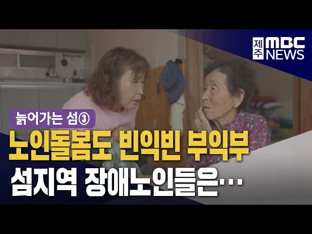 ◀ 앵 커 ▶ 인구 고령화가 빠르게 진행되는 가운데, 노인 인구 비율이 높은 농어촌 지역은 돌봄 인력이나 시설 모두 크게 부족한데요. 도시지역과의 격차가 갈수록 벌어지면서 공적 지원 체계 도입이 필요하다는 목소리가 커지고 있습니다. 홍수현 기자입니다. ◀ 리포트 ▶ 바다 건너 우도가 바라보이는 제주 동쪽의 작은 마...
