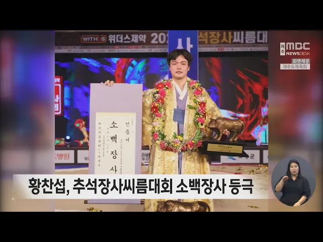 제주도청 소속 황찬섭이 소백장사에 등극했습니다. 황찬섭은 경남 고성군에서 열린 2024 추석장사 씨름대회 72킬로그램 이하 소백장사 결정전에서 창원시의 김성하를 3대 0으로 꺾고 생애 처음으로 장사 타이틀을 획득했습니다. 황찬섭은 올해 27살로 능인고와 경남대를 졸업했으며 올해 단오대회에서 태백 5위를 기록했...