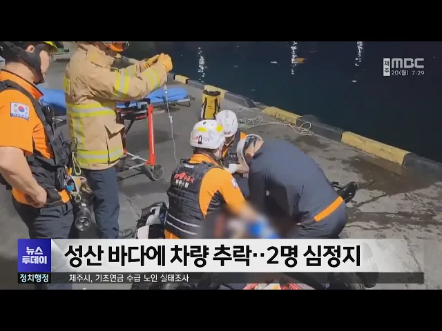 1톤 화물차가 바다로 추락해 2명이 심정지 상태로 병원에 옮겨졌습니다.오늘 새벽 4시 반쯤서귀포시 성산포수협 유통센터 앞 바다에1톤 화물차가 추락했습니다.이 사고로차량에 타고 있던 70대 남성과60대 여성이 심정지 상태로 구조돼제주시내 병원으로 옮겨졌습니다.해경은차량이 바다로 추락하는 것을 보고119에 신고했...