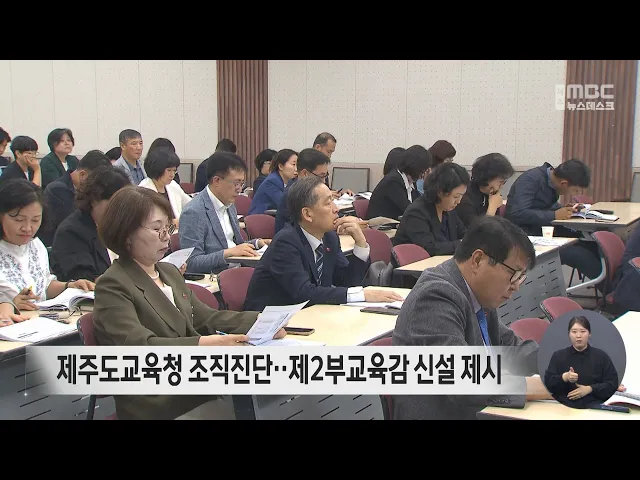 제주도교육청 조직개편과 관련해 제2부교육감 직제를 신설하는 방안이 제시됐습니다. 오늘(21일) 제주도교육청에서 열린 조직진단 연구용역 최종보고회에서 연구진은 언론 대응과 대외 협력, 정책 조정 분야를 총괄하는 제2부교육감 신설 방향을 제시했습니다. 또 안전복지국 기능을 강화하고, 늘봄과 IB, 특수교육 등 교육...