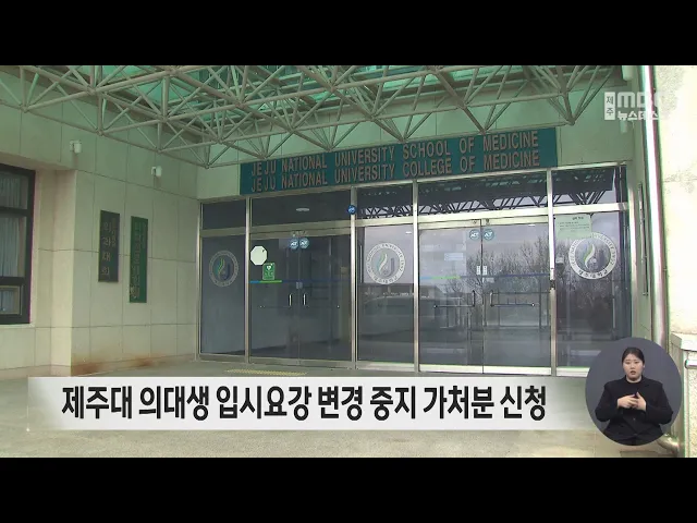 제주대 의과대학 등 지방 의대생들이 내년 입시요강 변경을 중지해달라며 가처분 신청을 냈습니다.제주대 의대생들은총장을 상대로 정원 증원을 내용으로 하는대입전형 시행계획 변경금지 가처분 신청을 법원에 제출했습니다.의대생들은 교육 공간과 여건이 부족한 상태에서의 증원은 의학 교육의 질 하락으로 이어질 것이...