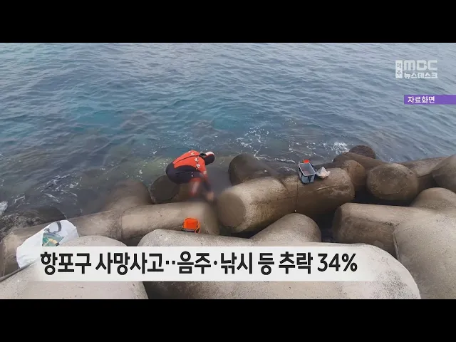 항포구 사망사고 가운데추락사고 비율이 가장 높은 것으로나타났습니다. 제주지방해양경찰청에 따르면 지난 2021년부터 3년 동안도내 항포구 안전사고 사망자는 44명으로이 가운데 추락이 34%를 차지했습니다. 유형별로는음주와 낚시, 부주의로 인한 추락이대부분을 차지했습니다. 해경은 사고가 잦은 구역의 위험 등급을 ...
