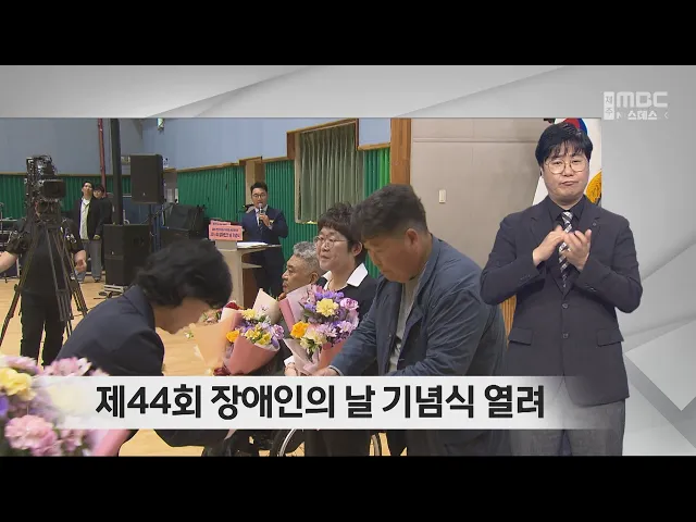 제44회 장애인의 날 기념식이 오늘, 제주시 사라봉 다목적체육관에서열렸습니다.제주도장애인총연합회 주관으로 열린기념식에는 장애인과 가족, 유관기관과 단체 관계자 등 천여 명이 참석해식전 축하공연과 장애인 인권헌장 낭독,유공자 표창 등의 순으로 진행됐습니다.또 장애인 직업재활상담과학대신고 홍보 등 부대행사...