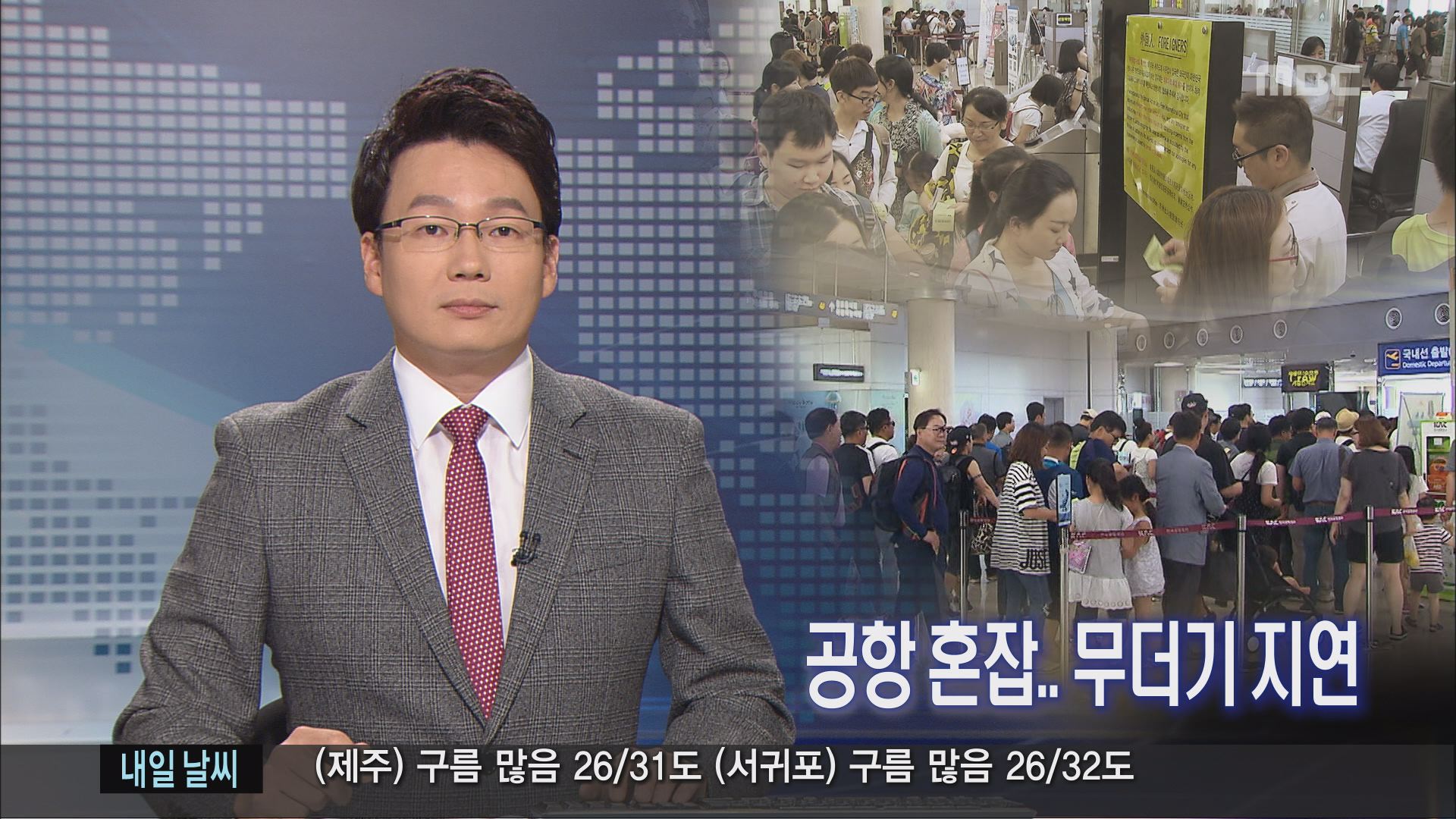 막바지 피서철을 맞아 제주를 찾는 관광객이 줄을 이으면서 제주공항의 항공기가 무더기로 지연됐습니다. 한국공항공사 제주지역본부에 따르면 오늘 오후 6시 30분, 제주에서 김포로 가려던 제주항공 여객기가 지연 출발하는 등 오늘 하루 항공기 90여 편이 무더기로 지연운항됐습니다. 공항공사는 제주공항의 혼잡으로 인...
