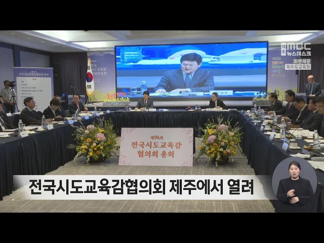 제96회 전국시도교육감협의회가 메종글래드 제주 호텔에서 열렸습니다. 이번 협의회에는 김광수 제주도교육감과 조희연 서울시교육감 등 전국 시도 교육감이 참석해 대안학교 설립 운영에 관한 규정 개정 건의 등 10개 안건을 심의했습니다. 협의회에 참석한 전국시도교육감들은 내일(3일) 열리는 제주4.3희생자추념식에 참...