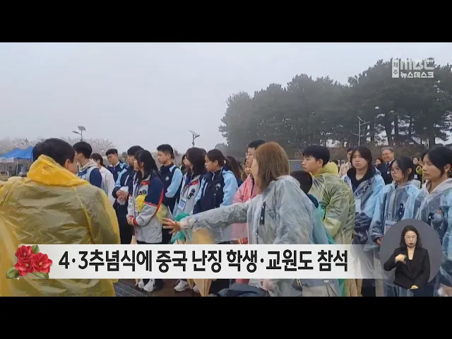 제주4.3희생자추념식에 중국 난징에서 온 학생들과 교원도 참석해눈길을 끌었습니다.4.3세계화를 위한 평화교육 교류를 위해제주에 온 중국 난징 학생과 교원 26명은 추념식에 참석해 희생자 영령을 추모하고,4.3평화공원을 답사했습니다.이들은 오후에 조천만세동산과 제주항일기념관을 견학한 뒤 4.3청소년 뮤지컬을 관람...
