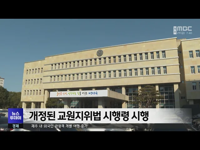 교원의 정당한 교육 활동을 보호하기 위해 개정된 교원지위법이 시행됐습니다.제주도교육청은 이에 따라 학교별 교권보호위원회를 교육지원청으로 이관해 관련 분쟁을 조정하고 교육 활동 침해 사안을 심의할 수 있도록 했습니다.또 교원이 아동학대 행위로 신고되면 교육감은 7일 안에 조사하거나 수사 기관에 의견서를 제...