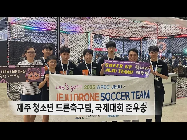 제주 청소년 드론축구팀이국제대회에서 준우승을 차지했습니다. 제주도는 2024 싱가포르 드론축구 챔피언십에서제주 청소년으로 구성된 제주인드론팀이준우승을 거뒀다고 밝혔습니다. 지난 6일부터 이틀 동안 싱가포르에서 열린 이번 대회에는우리나라와 태국 등 8개 팀이 참가했습니다. 드론축구는 5명이 한팀을 구성해축...