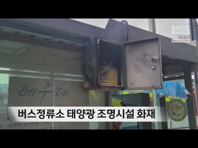 오늘 낮 12시 반쯤제주시 도남동 연북로의 한 버스정류소에 불이 나, 인명 피해는 없었지만태양광 조명을 위해 설치된 축전기가 불에 탔습니다. 소방당국은 낮에 태양광으로 발생한 전력을 야간에 조명으로 활용하기 위해 저장하는축전기와 전선이 심하게 불에 탄 점을 토대로정확한 화재 원인을 조사하고 있습니다.