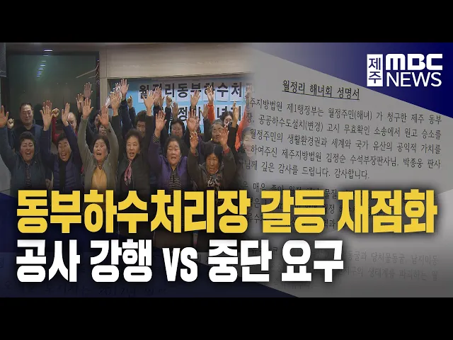 ◀ 앵 커 ▶주민들의 반대로 6년 넘게 중단됐던제주동부하수처리장 증설 공사가 지난해 6월 마을회의 협의로 겨우 재개됐는데요. 그런데 끝까지 반대했던 일부 주민들이 제기한 소송에서 법원이 증설공사를 위한 제주도의 고시가 무효라고 판단해 파장이 예상됩니다. 홍수현 기자입니다.◀ 리포트 ▶ 월정리마을회와의 협의로지...