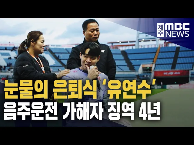 ◀ 앵 커 ▶교통사고를 당해 선수 생활을 접어야만 했던 제주 유나이티드 소속 유연수 선수 기억하실 텐데요.법원이 음주 운전을 하다 사고를 낸 30대가해 차량 운전자에게 실형을 선고하고 법정구속했습니다.홍수현 기자입니다.◀ 리포트 ▶두 발 대신 휠체어를 타고 들어선 홈 구장.입단 3년 만에 불의의 사고로 다시 뛰지 못...