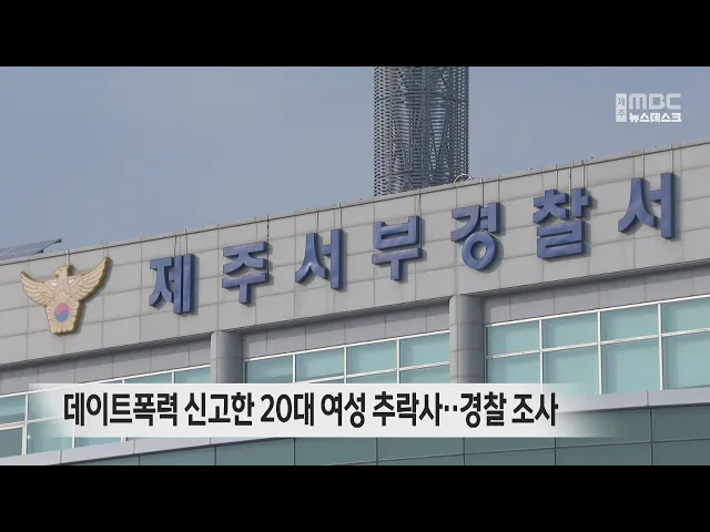 데이트 폭력을 신고한 여성이건물에서 떨어져 숨져 경찰이 조사에 나섰습니다. 제주서부경찰서는 오늘 새벽 0시 반쯤제주시내 모 오피스텔에서20대 여성이 떨어져 숨진 사고와 관련해여성의 남자친구와 출동한 경찰관 등을 상대로정확한 사고 경위를 조사하고 있습니다. 경찰은숨진 여성이 데이트 폭력으로 연인을 신고한 ...
