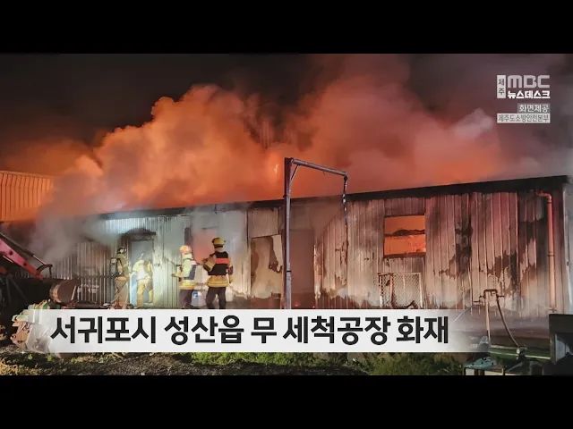 새벽 시간, 무 세척 공장에 불이 났지만인명피해는 없었습니다. 오늘 새벽 3시쯤서귀포시 성산읍의 한 무 세척공장에서 불이 났습니다. 이 불로인명피해는 없었지만공장 내부와 옆 숙소 190㎡가 불에 타소방서 추산 6천700만 원의 재산피해가 났습니다. 경찰과 소방당국은잠을 자던 중 타는 냄새가 난 뒤 검은 연기가 났다...