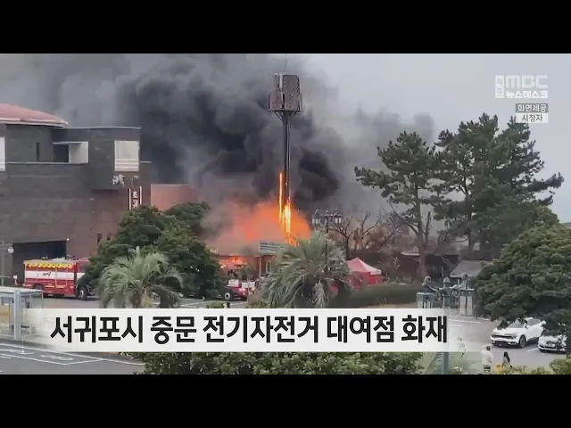 오늘 오후 4시 반쯤서귀포시 중문관광단지의한 전기자전거 대여점에서불이 났습니다. 이 불로 인명피해는 없었지만시커먼 연기가 나고 시뻘건 불길이 거세지면서119에 화재신고 20여 건이 잇따라 접수됐습니다. 소방당국은 30여 분만에 화재를 진압하고,폭발음이 들렸다는 목격자와점포 관계자 등을 상대로정확한 화재 원...