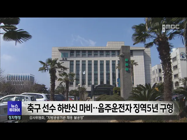 음주사고로 프로축구 선수를 크게다치게 한 30대에게 검찰이 징역5년을 선고해줄 것을 재판부에 요청했습니다. 이 남성은 지난해 10월,서귀포시 표선면의 한 도로에서만취상태로 과속운전을 하다제주유나이티드 선수 5명이 탄 차량을들이받았습니다. 이 사고로 유연수 선수가 하반신이마비되는 큰 부상을 입었고 결국 은퇴...