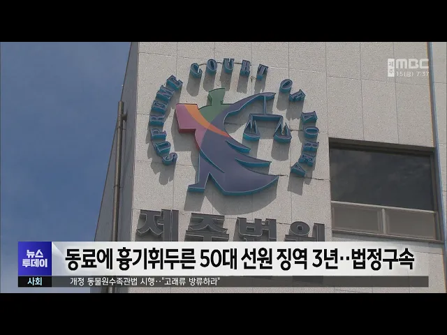 말다툼을 하다 동료에게 흉기를 휘두른50대가 법정 구속됐습니다. 제주지방법원 제2형사부는 살인미수 혐의로 재판에 넘겨진54살 남성에게 징역 3년의 실형을 선고하고법정 구속했습니다. 이 남성은 지난해 11월,서귀포항에서 술을 마신 상태에서 하역 작업을 하던 중흉기를 휘둘러 동료를 다치게 한 혐의로 재판에 넘겨졌...