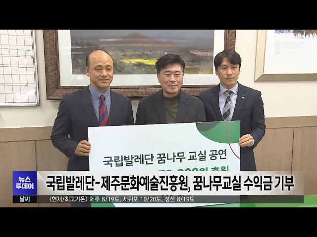 국립발레단과 함께하는발레 꿈나무 갈라 공연이 막을 내린 가운데,공연 수익금 기부식이 열렸습니다. 국립발레단과 제주문화예술진흥원은 지난 3월부터 8개월 동안 발레의 꿈을 키우는 도내 소외계층 청소년들에게 주 2회 발레를 지도하고,갈라 공연을 진행해 얻은 수익금440여 만 원을 기부했습니다. 기부금은 전액초록우...