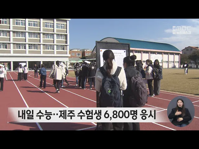 2024학년도 대학수학능력시험이 제주에서도 내일 16개 시험장에서 치뤄집니다. 제주지역 수능 응시생은 지난해보다 99명 늘어난 6천800여 명으로, 수험생들은 시험일인 내일 오전 8시 10분까지 배정된 시험장에 입실해야 합니다. 한편, 제주도교육청은 오늘 수험생 예비소집을 실시해 수험표를 배부하고 유의사항 등을 전...