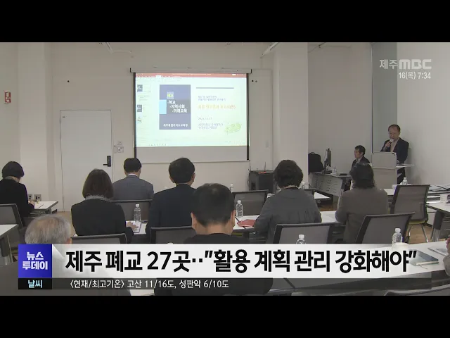 방치된 폐교를 효율적으로 운영하기 위해계획과 관리를 강화해야 한다는 의견이제시됐습니다. 제주도교육청 오라청사에서 열린 폐교 활용방안 연구용역 최종보고회에서 박정환 제주대 산학협력단 연구책임자는 폐교재산 관리추진단 구성을 전문화, 다양화해야 한다고 밝혔습니다. 또 폐교 재산을 체계있게 활용하기 위한 ...