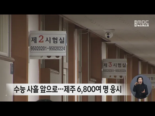 2024학년도 대학수학능력시험이오는 16일 실시됩니다. 제주지역 시험장은 제주시 12곳과 서귀포 4곳 등 16곳이며,재학생 5천70명을 포함해 6천800여 명이 응시할 예정입니다. 이번 수능시험에서는코로나19 확진 수험생도일반 수험생과 함께 배정된 시험실에서 응시하게 되며,다만 KF94 마스크를 착용하고점심 식사는 별도...