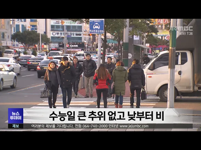 수능시험일 제주는큰 추위 없이 낮부터 비가 오겠습니다. 제주지방기상청은 이번 수능일인 16일,기온은 평년과 비슷해 수능 한파는 없겠고,낮부터 비가 오겠다고 예보했습니다. 다만 비가 온 뒤 오후부터는북쪽의 찬 공기가 유입돼 바람이 강하게 불고체감온도가 낮아져 쌀쌀해지겠다며,수험생들은 기온 변화에 유의해 체온...
