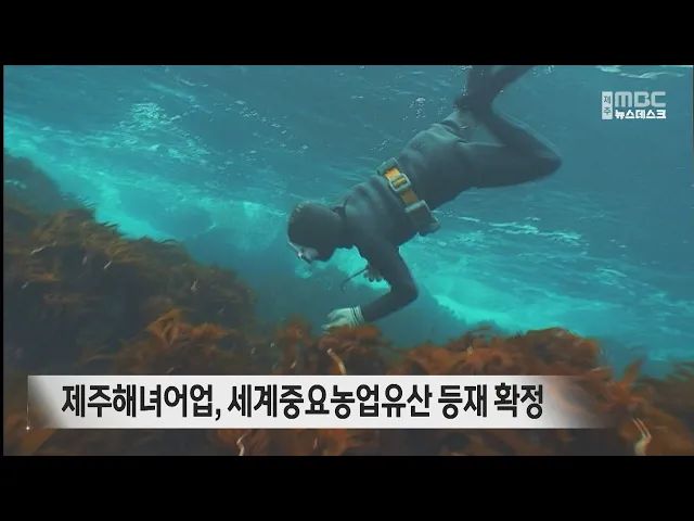 제주해녀어업이세계중요농업유산으로 등재됐습니다. 유엔 식량농업기구는 이탈리아 로마에서 열린 심의에서 한국의 제주해녀어업을세계중요농업유산에 등재하기로 확정했습니다. 이로써 제주해녀는 2015년 국가중요어업유산 지정과2016년 유네스코 인류무형문화유산,2017년 문화재청 국가무형문화재 지정에 이어국내외 유...