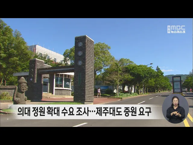 정부가 의대 입학 정원 확대를 위한 수요를 조사 중인 가운데제주대도 증원을 요구해 결과에 관심이쏠리고 있습니다. 정부는 지난달 말제주대 등 전국 40개 대학에공문을 보내 입학정원 확대에 대한수요 조사를 했고,현재 입학정원 40명인 제주대도증원을 요청한 것으로 파악됐습니다. 제주대는 그동안 60명을 증원해 정원...
