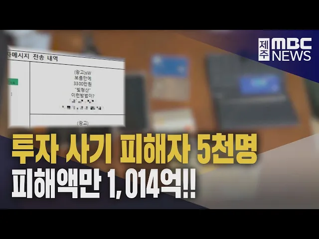 ◀ 앵 커 ▶ 높은 수익을 챙길 수 있다는 휴대전화 투자 광고 문자메시지 많이보실 텐데요, 투자금의 300% 고수익을 보장해 주겠다며5천 명에게 천억 원이 넘는 돈을 받아 가로챈 사기 일당이경찰에 붙잡혔습니다. 홍수현 기자입니다. '보름 만에 3천300만 원 빛 청산','꿈을 현실로 255% 돌파'. 사기 일당이 투자자들을 끌어...