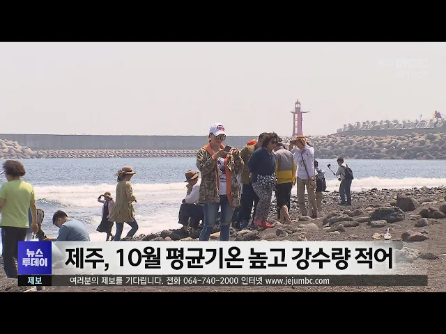 지난 달 제주지역 기온은 높고강수량은 적었던 것으로 나타났습니다. 제주지방기상청에 따르면10월 제주지역 평균기온은 19.2도로평년보다 0.5도 높았고,평균 강수량은 21.3밀리미터로 평년의 5에서 38% 수준에 그쳤습니다. 특히 제주시 한경면 고산의 10월 강수량은 2.8밀리미터로 관측 이래 가장 적었습니다. 기상청은기...