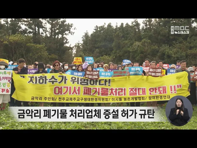제주시 한림읍 금악리 마을회와 이시돌 농촌산업개발협회 등은 폐기물 처리시설 증설 허가와 관련해 기자회견을 열고, 주민 등의 재고 요청에도행정이 절차상 문제가 없다고 밝힌 것은 엉터리 환경조사와 사업계획을 눈감아주겠다는 뜻이라고 규탄했습니다. 이들은 해당 업체가 그동안 폐기물을 처리하는 과정에서지하수나...