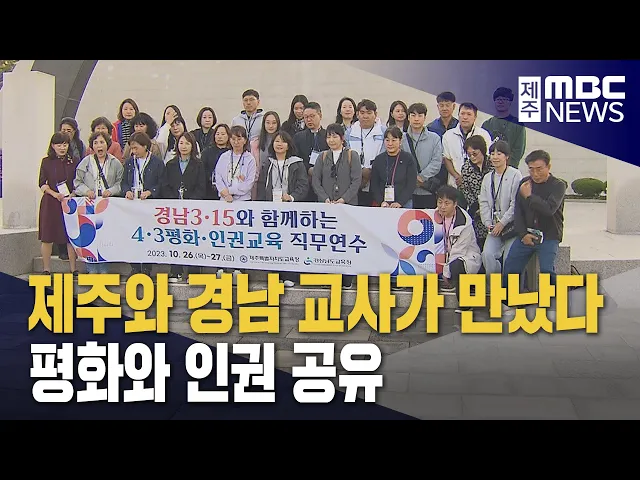 ◀ 앵 커 ▶ 경남의 3.15와 제주 4.3의 역사를 바로 알고평화와 인권교육을 확산하기 위한 교사들의 연수가 제주에서 진행돼 눈길을 끌고 있습니다. 올해로 네번째 이어지고 있는 교사들의 교류가평화와 인권을 바탕으로한 올바른 역사 교육에기여할 것으로 기대됩니다. 홍수현 기자입니다. 가을 햇살을 머금은 제주4.3평화공...