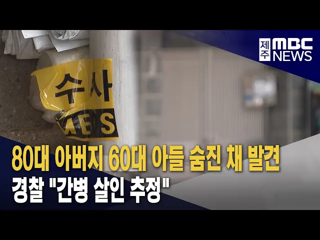 ◀ 앵 커 ▶ 제주의 한 주택에서 80대 아버지와 60대 아들이 함께 숨진 채 발견됐습니다. 경찰은 아버지를 간병해 온 아들이 아버지를 살해하고 스스로 목숨을 끊은 것으로 보고 있습니다. 이따끔 기자가 보도합니다. ◀ 리포트 ▶ 구급차 한 대가 주택가 골목에 들어옵니다. 뒤이어 경찰차가 도착하고, 경찰관이 황급히 주택 ...
