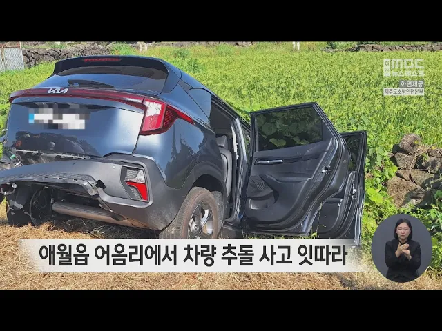 오늘 오후 4시 10분쯤 제주시 애월읍 어음리의 한 도로에서 SUV 차량이 앞서가던 SUV 차량을 들이받았습니다. 이 사고로 뒤따라오던 승용차가 급정지하며 차량 3대에 타고 있던 8명 가운데 6명이 다쳐 병원으로 옮겨졌습니다. 이보다 앞선 낮 12시 반쯤에는 애월읍 어음리의 다른 도로에서 렌터카 2대와 승용차 1대가 잇...