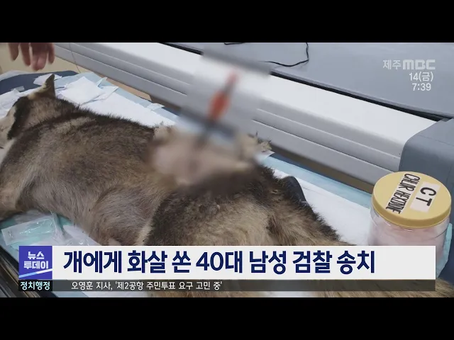 제주서부경찰서는 떠돌이 개에게 화살을 쏜 혐의로 붙잡힌 40대 남성을 검찰에 넘겼습니다. 이 남성은 지난해 8월 서귀포시 대정읍에서 비닐하우스 주변을 배회하던 개에게 길이 70센티미터의 활을 쏘아 맞힌 혐의를 받고 있습니다. 피해견 '천지'는 구조되자마자 화살 제거 수술 등 치료를 받아 건강을 회복했는데 조만간...