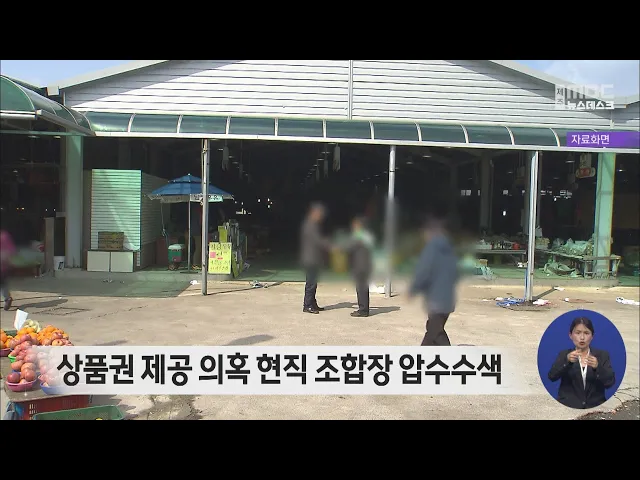 서귀포경찰서는 지난달 실시된 전국동시조합장 선거 과정에서 조합원들에게 천 만 원 이상의 상품권을 제공한 혐의로 도내 한 수협 조합장과 관계자 3명을 입건하고 압수수색을 벌였습니다. 경찰은 압수한 휴대전화와 관련 자료 등을 분석하고 있으며 해당 조합장은 혐의를 부인하고 있는 것으로 전해졌습니다.