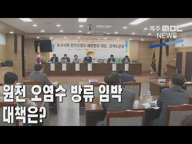◀ANC▶ 조만간 일본 후쿠시마 원전 오염수 방류가 시작될 것으로 예상되는데요. 제주도와 도의회가 대응방안을 마련하기 위한 정책토론회를 열고 대안 마련에 나섰습니다. 이따끔 기자가 보도합니다. ◀END▶ ◀VCR▶ 올해 봄과 여름 사이 바다에 방류하겠다고 밝힌 후쿠시마 원전 오염수. 해류를 따라 우리나라에선 ...