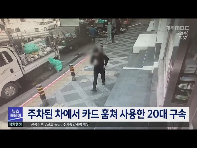 제주동부경찰서는 골목길에 세워진 차량에서 체크카드를 훔쳐 사용한 혐의로 20대 남성을 구속했습니다. 이 남성은 지난 10일 아침 7시 50분쯤 제주시 조천읍 한 아파트 공사현장 인근 주차된 차량에서 휴대전화와 체크카드 등을 훔치고, 훔친 카드로 410만 원 어치의 귀금속을 산 혐의를 받고 있습니다.