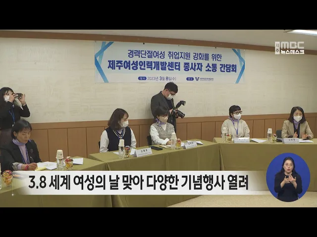 3.8 세계 여성의 날을 맞아 도내 곳곳에서 기념 행사가 열렸습니다. 제주도는 제주시내 3.8km 구간을 걷는 여성 권익 향상 캠페인을 진행했고, 오영훈 지사는 여성 새로일하기 센터를 방문해 여성 권익향상과 취업 문제 해결에 노력하겠다고 밝혔습니다. 제주4·3 여성유족 100인은 여성의 날 기념포럼에 참여해 여성 4·3희...