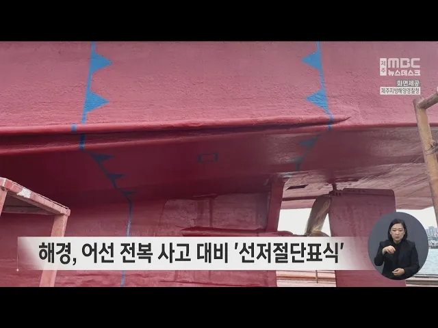 어선 전복 사고가 발생할 경우 구조 통로를 확보하기 위해 어선에 절단 표시가 새겨집니다. 제주해양경찰청은 어선 바닥에 선원들의 침실 위치를 표시해 사고가 났을 때 표시 부분을 절단하면 구조 통로를 확보할 수 있도록 '어선선저절단표식'을 배에 칠하기로 했습니다. 제주 해경은 도내 조선소에서 수리하는 근해어선 3...