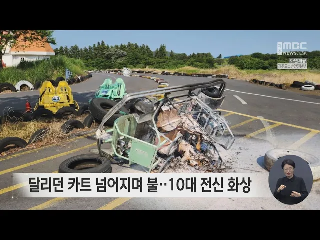 달리던 카트에서 불이 나 10대가 전신 화상을 입은 사고에 대해 경찰이 업체의 업무상 과실 여부를 조사합니다. 서귀포경찰서는 카트가 이탈 방지용 타이어에 부딪쳐 넘어졌고 연료가 흘러나오면서 마찰열에 의해 불이 난 것으로 보고 다음 주 국과수와 합동감식을 벌일 예정입니다. 어제 오후 3시 40분쯤 서귀포시의 한 카...