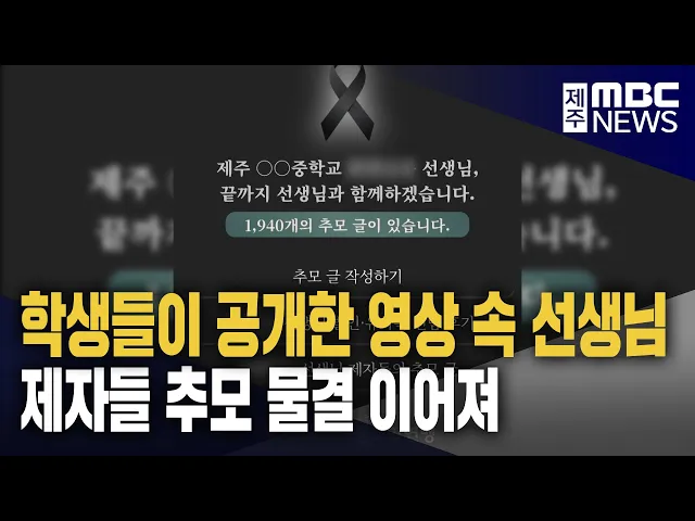 ◀ 앵 커 ▶ 제주의 한 중학교에서 숨진 교사가 학생 보호자의 민원에 시달렸던 것으로 알려지면서 안타까움을 더하고 있는데요. 제자들이 추모 물결이 계속되는 가운데, 재작년 서이초 사태 이후 교권 보호를 위한 대책이 마련됐지만 학교 현장은 달라지지 않았다는 지적이 나오고 있습니다. 이따끔 기자가 보도합니다. ◀ 리...