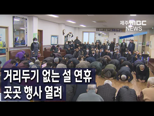 ◀ANC▶ 설 연휴 사흘째인 오늘 마을 주민들의 화합을 다지는 합동 세배가 3년 만에 열렸습니다. 설맞이 민속놀이 행사장들은 연휴를 즐기는 도민들로 붐볐고 제주공항에는 귀경행렬이 이어졌습니다. 이따끔 기자입니다. ◀END▶ ◀VCR▶ 정월 초이튿날, 마을회관이 꽉 들어찼습니다. 코로나19로 열리지 못했던 신년 하...