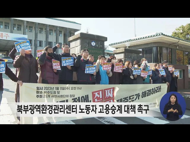 제주참여환경연대 등 도내 26개 시민사회단체는 제주도청 앞에서 기자회견을 열고 설 전에 제주북부광역환경관리센터 노동자 대량해고 문제를 해결하라고 제주도에 촉구했습니다. 이들은 다음달이면 일터를 잃게 될 위기에 처한 북부광역환경관리센터 56명의 노동자들이 고용승계를 요구하며 거리로 나선 지 두 달이 넘고 ...